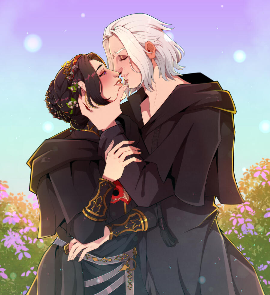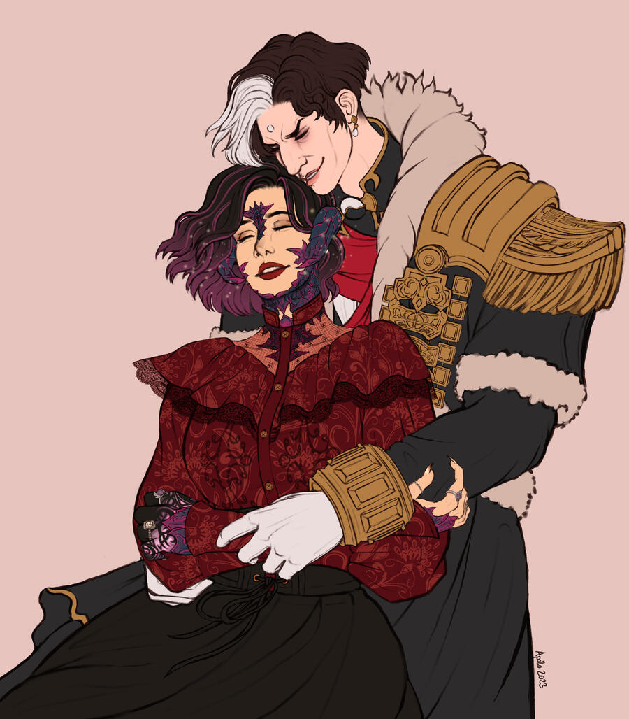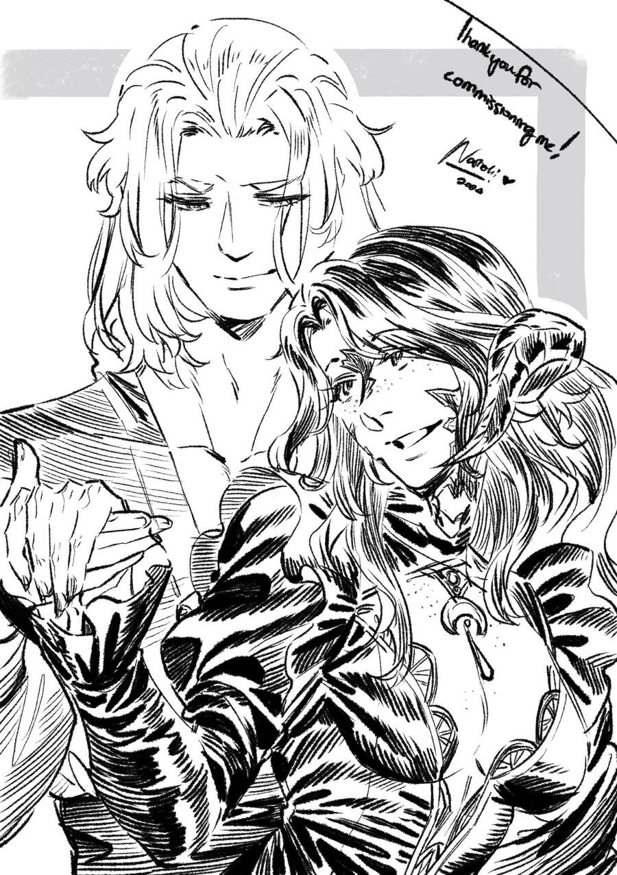 During the early events of Shadowbringers, Selene met a mysterious garlean man in Eulmore who she began a budding relationship with. She was not sure about him, as he would not share that many details about him, but despite that she felt familiarity and comfort in his presence almost instinctively. From time to time he would find her when she was alone and they would share a chat. When he pulled her from the lake in Il Mheg, they shared a kiss on the bank before he disappeared. Later she came to learn that this man was Emet-Selch, an ascian who was also the former emperor of Garlemald. She felt betrayed and used, but also confused about her feelings towards him. As being around him forced more of the memories she had dreamed about as a child to become clearer, she realized that he was important to her past self. Ultimately, after he rescued Y'shtola and explained the ascians purpose in the rejoinings, they began a relationship in earnest. After the events of Shadowbringers, Selene has most of the memories of Persephone, the former Azem, returned to her and remembers her and Hades' time together when the world was unsundered. After the Seat of Sacrifice, Emet-Selch is able to join his consciousness from the aetherial sea to the shoebill familiar that follows Selene. He watches her throughout the events of Endwalker, and eventually stays at the end of Ultima Thule to be with her and to live a life free of his former duty.